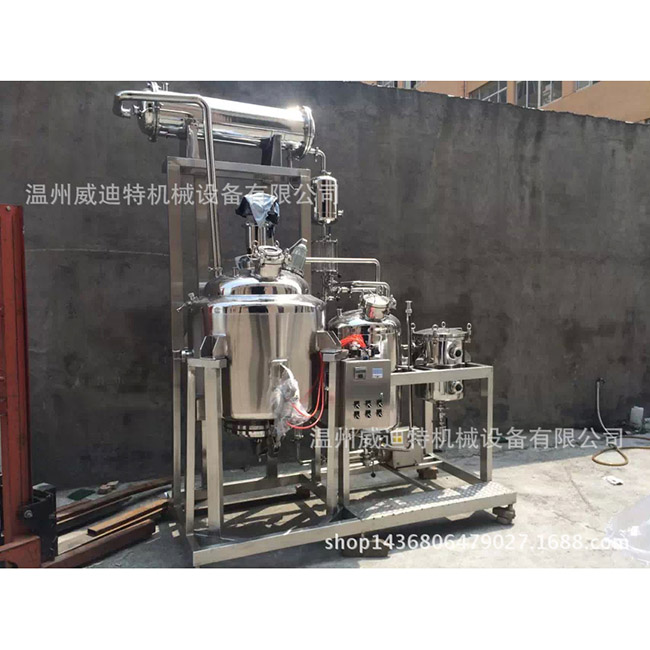 該設(shè)備的整個(gè)提取過程均采用封閉式循環(huán)系統(tǒng)完成。可以在大氣壓或大氣壓下提取。無論是金銀花提取,酒精提取,油提取還是其他目的,給定過程中的所有金銀花都必須根據(jù)藥物的性能要求自行切割。提取罐是為金銀花的沸騰提取過程設(shè)計(jì)的多功能設(shè)備,可以提取酒精,回收酒精并分離出揮發(fā)油。除提取罐的主要設(shè)備外,它還配備了泡沫阱,冷卻器和油水分離器。這些儀器由不銹鋼制成,與藥物接觸,壓力容器檢查部門對(duì)中間層的加熱進(jìn)行了嚴(yán)格測(cè)試。在萃取過程中,它由冷凝器,油水分離器等組成,并具有完全封閉的循環(huán)系統(tǒng),同時(shí)還從廢物中回收有機(jī)溶劑。