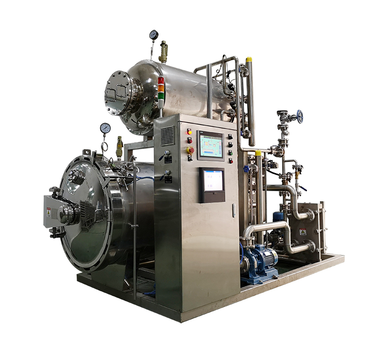 該設備由鍋體、鍋蓋、開啟裝置、鎖緊模塊、安全聯鎖裝置、軌道、滅菌框、蒸汽噴管及若干管口等組成、鍋蓋密封采用充氣式硅膠耐溫密封圈,密封可靠,使用壽命長。具有受熱面積大,熱效率高、加熱均勻、液料沸騰時間短、加熱溫度容易控制等特點、殺菌鍋主要用于食品行業、醫藥等各領域。